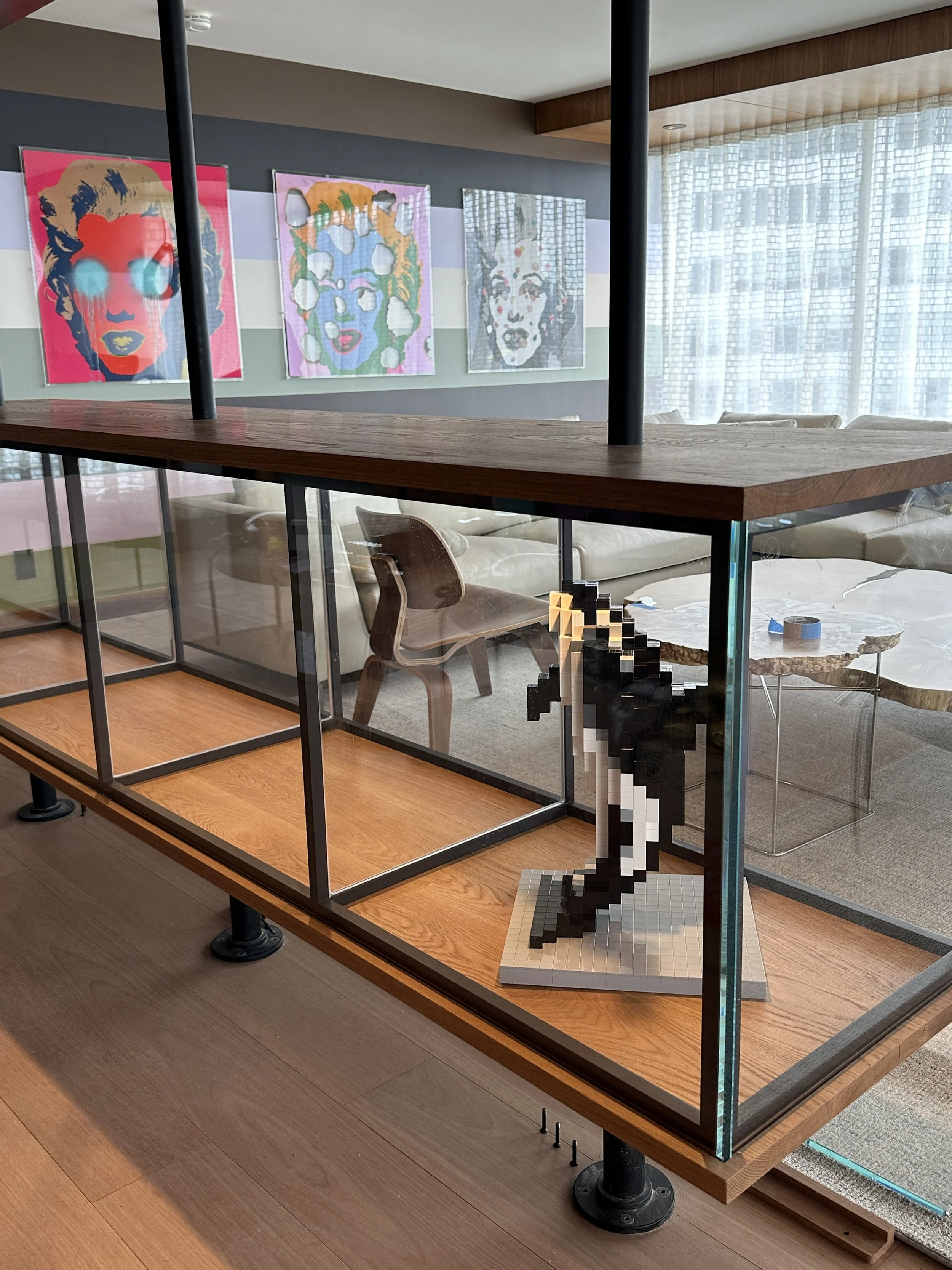 Paul was commissioned to recreate a miniature LEGO version of Douglas Coupland’s Digital Orca for the new Douglas Coupland suite, called Suite X, at the Fairmont Pacific Rim hotel in Vancouver, Canada. The suite looks stunning and has the best view in Vancouver overlooking the harbour and Stanley Park.